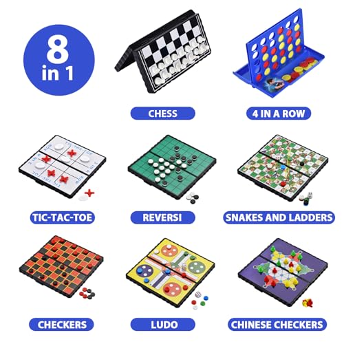 COLORGO 8-in-1 Mini Magnetic Chess Game Set with Portable Folding Magnet Board Pocket Games, Family Trips Camping Activities Party Games for Kids and Adults