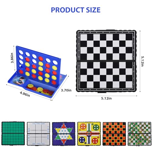 【8 in 1】Experience our 8-in-1 magnetic board game, this ultimate folding board game set includes chess, Checkers, Reversi, Snakes and Ladders, Ludo, 4 in a Row Game, Tic Tac Toe, and Chinese checkers. All the game parts are contained in the box. 8 classic games in one for more fun.