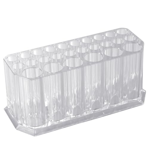 ELEGANT DESIGN: Designed with a small footprint providing you more space. Size:5.12*2.17*2.17 inches (13×5.5×5.5cm). Each regular slot measuring at 0.32 inch(0.8cm). Each jumbo slot measuring at 0.55 inch(1.4cm). Organize 26 individual eye/lip liner products.