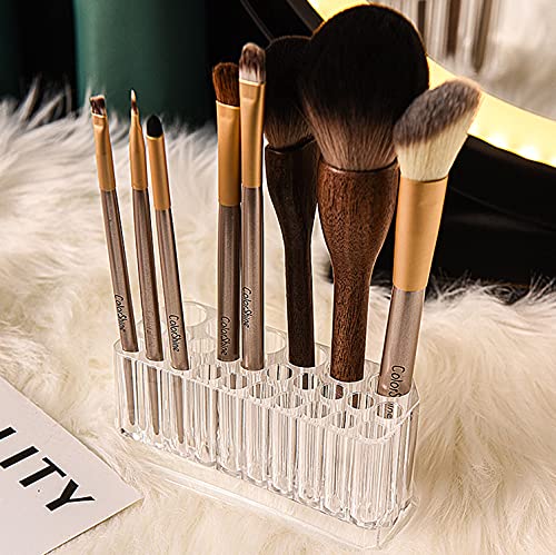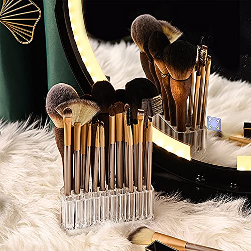ORGANIZER: Fits smaller handle sized beauty blending face brushes, larger holes in front / smaller holes in back, the increased wall height allows for stability when moving, offers a small footprint taking up less vanity counter space, Fits in most drawers.