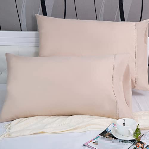 AYASW Pillowcases Queen Size Set of 2 Premium Soft and Cozy 1800 Brushed Microfiber with Envelope Closure Pillow Case 2 Pack Beige 20×30 inches Wrinkle, Fade Resistant Easy Care Breathable