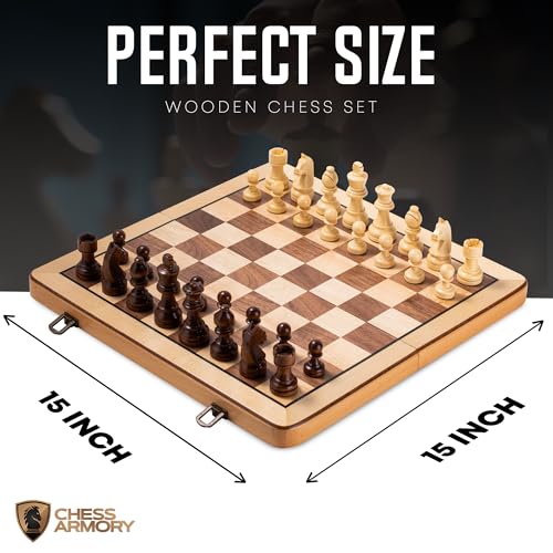 Chess Armory Premium Chess Set – Wooden Board Game with a Portable Wood Case and Secure Storage for Pieces, Set for Kids and Adults (Beech Wood)