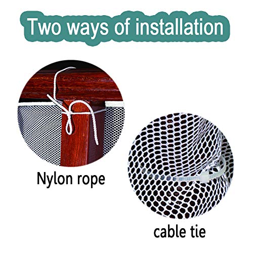 EASY TO INSTALL: Use rope or cable tie to pierced the mesh and secure the safety net on the staircase or balcony.(The end of the cut cable tie may be sharp. Turn the end to the side that the child can’t touch to prevent scratches).