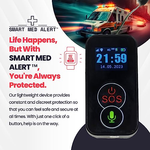 Smart Med Alert – Elderly Cellular Medical Alert Device | Wearable Panic Button Necklace | Medical Alert Systems for Seniors | Water Resistant with Built-in Fall Detection for Better Quality of Life