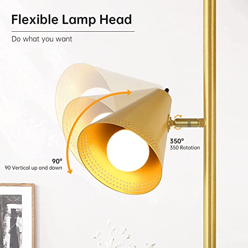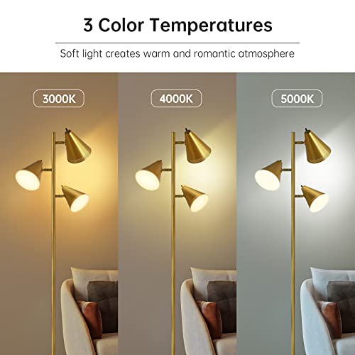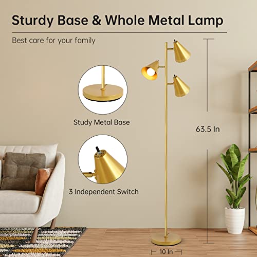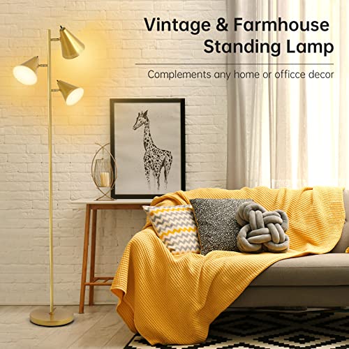 Farmhouse Floor Lamp,Gold Standing Tall Pole Lamp, 3pcs 9W LED Tree Floor Lamp,3-Color Temperature, Adjustable Metal Lampshades,3 Independent Switch,Industrial Floor Lamp for Living Room,Bedroom,Home