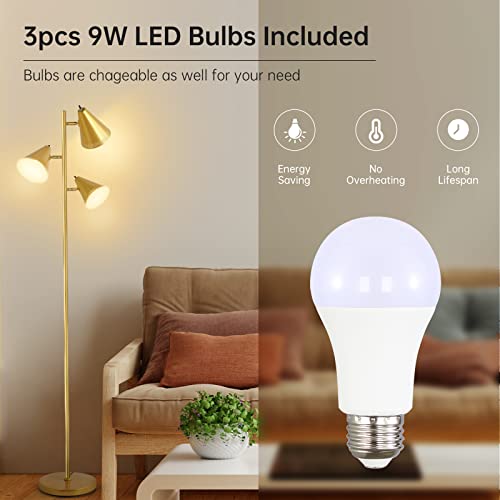 3pcs 9W LED Bulbs; For your convenience, BoostArea offers 3pcs 9 Watt LED Bulbs for this modern floor lamp, triple lamp head design is great for illuminating large spaces, making it an ideal LED living room lamp; The standing tall pole lamp is not only more energy-efficient but also features 3 color temperatures from 3000K to 5000K; Enjoy a cozy night on the sofa with families in 3000K lighting, choose 4000K for dinner with friends, while 5000K is perfect for focusing on reading or working tasks