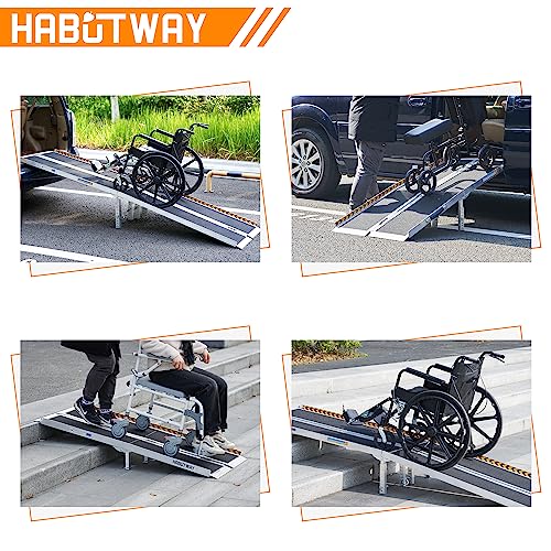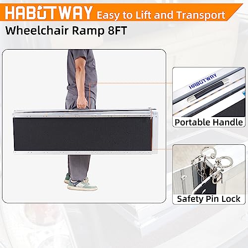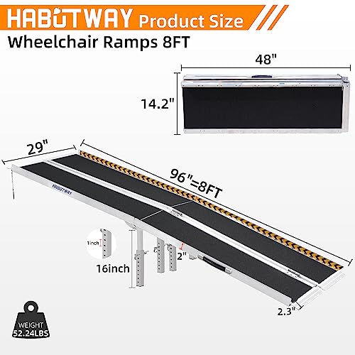 HABUTWAY 8ft Wheelchair Ramp, Portable Wheelchair Ramp with Support Legs, Double Non-skid Ramp Hold Up to 800Lbs, Threshold Ramp for Home,Stairs, Curbs,Steps,Doorway