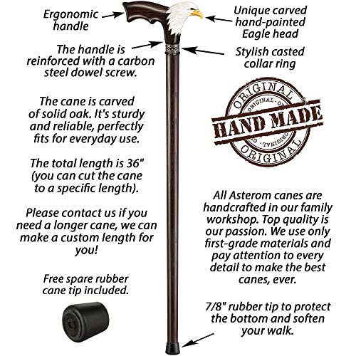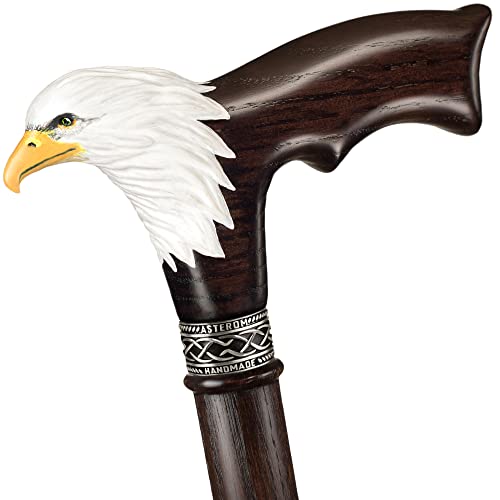 Asterom Hand-Painted Wooden Carved Walking Cane for Men – Bald Eagle – Unique Wood Cane Stylish Walking Stick