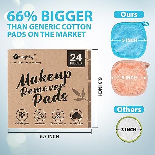 Orighty Reusable Makeup Remover Pads 24 Pack, Microfiber Makeup Remover Cloths Cotton Rounds, Eco-Friendly Face Pads for All Skin Types, Make Up Wipes for Facial Cleansing, Ideal for Women 5 x 5’’