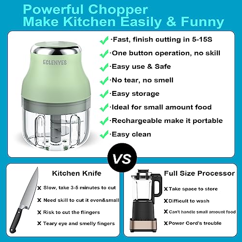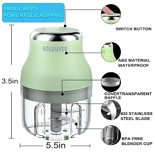 Vegetable Chopper, Electric Garlic Chopper, 250ML USB Rechargeable Mini Chopper, Powerful Small Food Processor, Blender to Vegetable, Wireless Food Chopper for Ginger, Chili, Fruit, Meat, etc(Green)